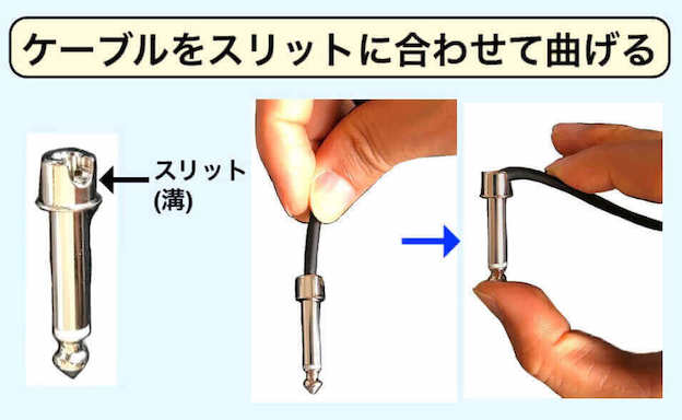 ⑤ケーブルをスリット(プラグの溝)に合わせて曲げる