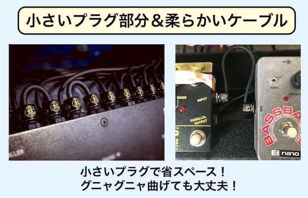 細いケーブルでエフェクターボード内の取り回しが楽になります♪