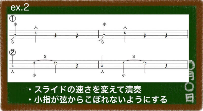 ・弦を押さえたまま指をすべらせて音程を変化させる奏法