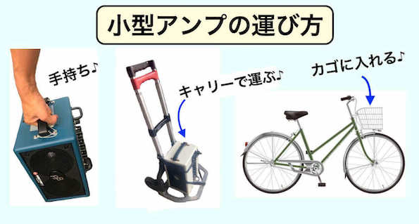 筆者はアンプを自転車のカゴ入れて、高校まで運んだり、