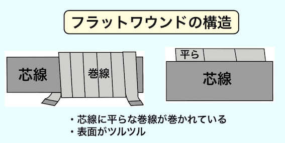 ・芯線に内側がラウンドで外側がフラットの巻き線を張った弦