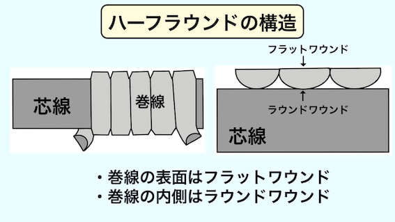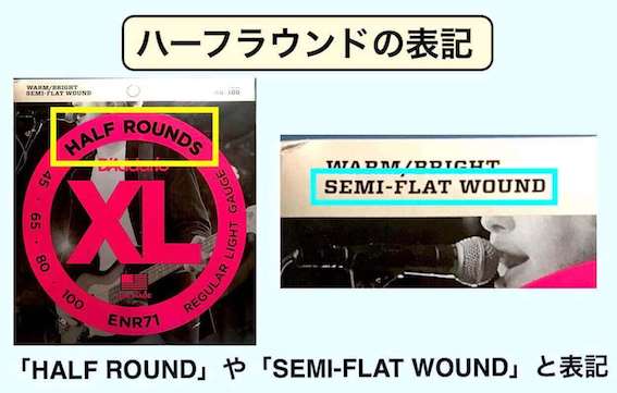 「Half Round」「HALF ROUNDS」「Semi-Flat-Wound」と表記