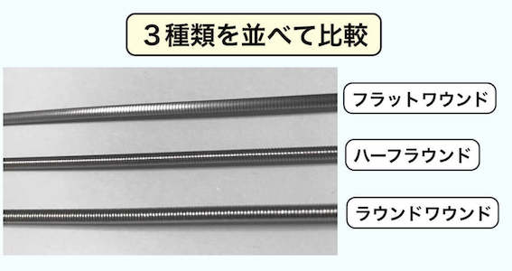 ハーフワウンドを知るためには、ラウンドワウンドとフラットワウンドとの違いも知る必要がありあます。