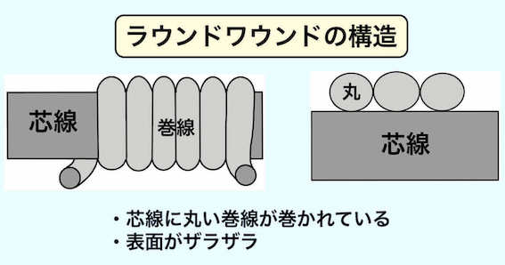 「ラウンドワウンド」の表記がなくてもラウンド弦だよ。