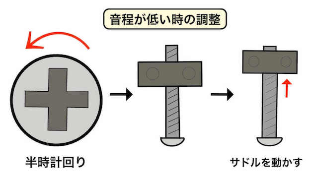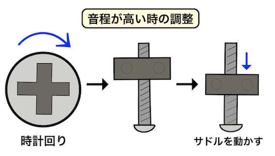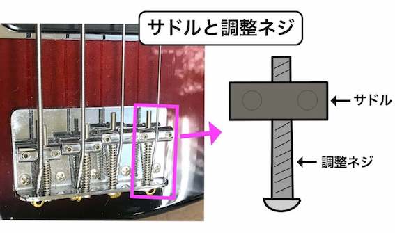 まずベースのブリッジの「調整ネジ」と「サドル」の役割を知っておきましょう〜