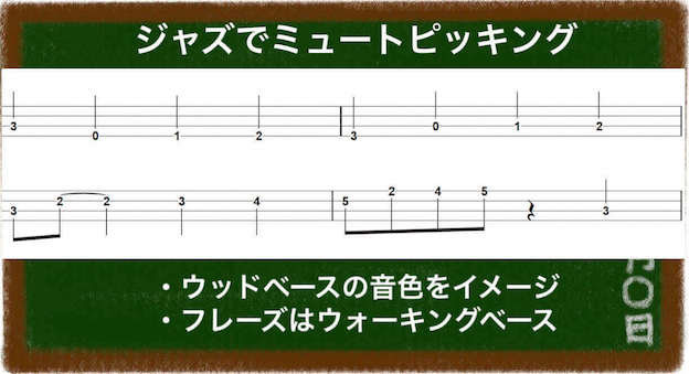 ウッドベースの音は減衰するのが早いから、そのニュアンスを出すにはミュートピッキングが最適なんだ♪
