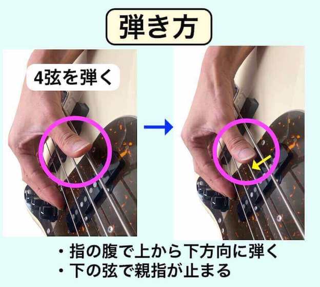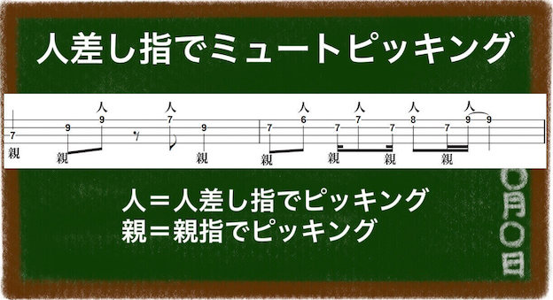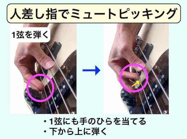 親指を使ってベースを弾く奏法”ミュートピッキング”