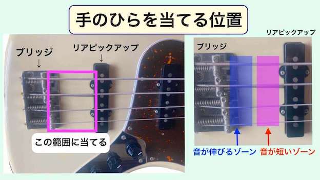 「手のひらをブリッジ付近の弦に当てる」ってのは、どのあたり?