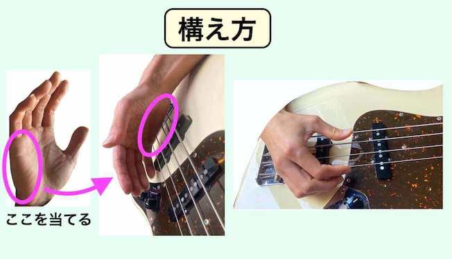 ・手のひら(写真)をブリッジ付近の弦に当てる