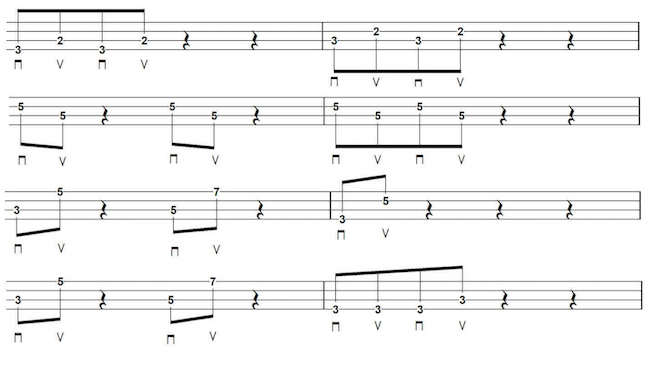 ex.1〜4のフレーズを通して演奏(テンポ120)