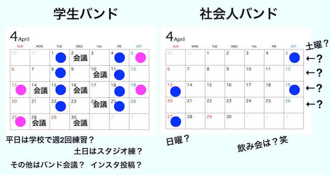 | ●バンド1ヶ月のスケジュール | ・学生バンド ・社会人バンド |