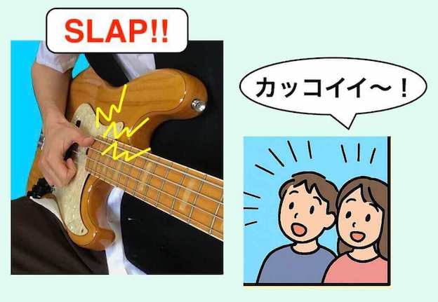 スラップの練習はこちらの記事で→スラップ奏法の解説♪