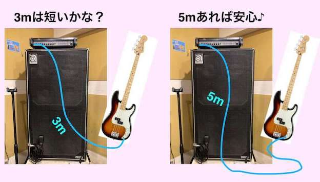 ベースアンプは背の高いモデルが多くて、3mシールドだと宙吊りでつなぐことになりがち。