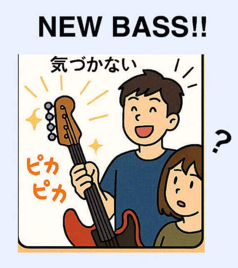 筆者は同じバンドで何本かベースを使い分けますが、メンバーから「ベース変えた?」と言われたことがないです。。。