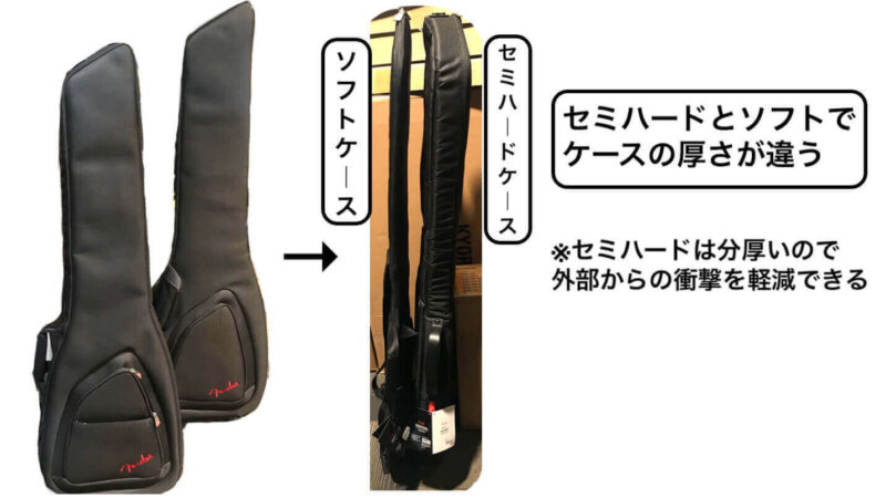 フェンダーのケースを比べると、厚さが違います。
