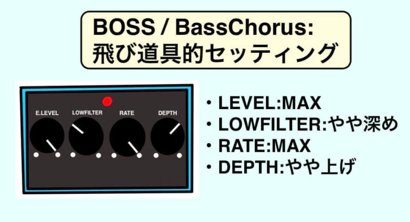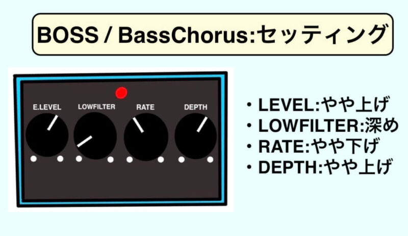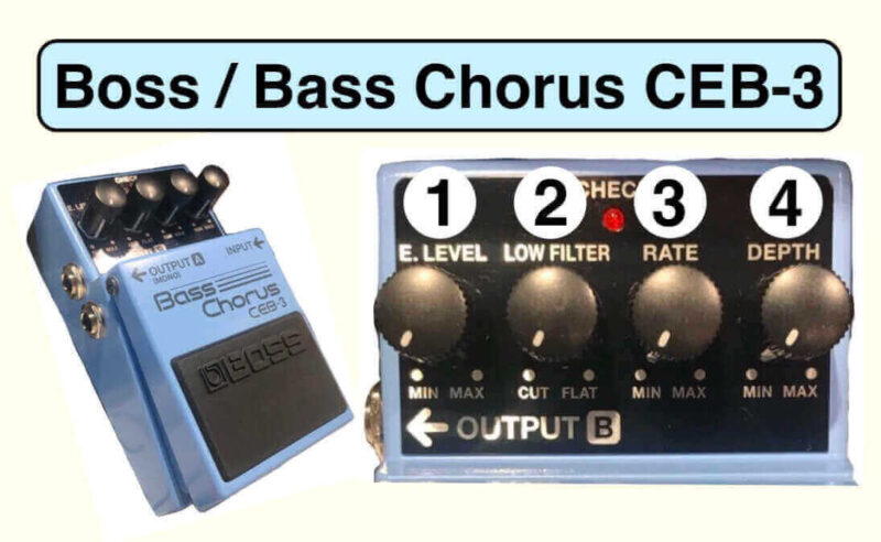 ②Boss/ Bass Chorus CEB-3:LOW CUTでスッキリしたサウンドから飛び道具的なサウンドまで作れる
