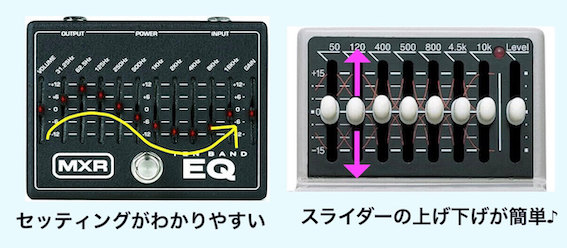 例えばBOSSイコライザーのベース用とギター用を比べると?