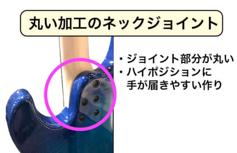 ・ネックジョイントが丸く作られハイポジションが弾きやすい