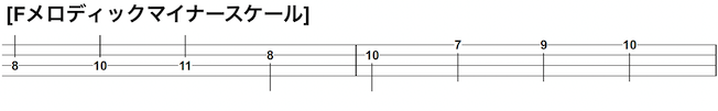 ポジションを移動して、”Fのメロディックマイナー”で弾いてみましょう♪
