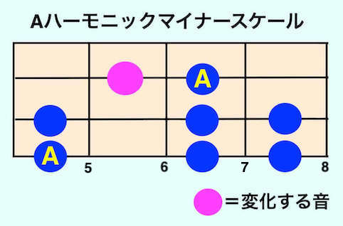 ハーモニックマイナースケール構成音/ 指板図/ 使いどころ