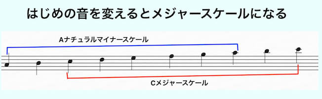 ナチュラルマイナースケールはメジャースケール(ドレミファソラシド)と密接に関係しています。