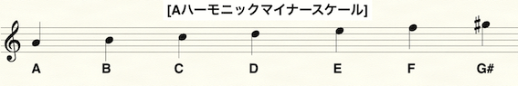 次は「ハーモニックマイナースケール(和声的短音階)」