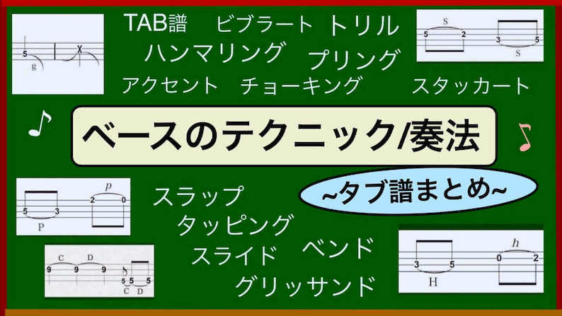 ベースの演奏テクニック記号~一覧表~続きは各リンクへ♪