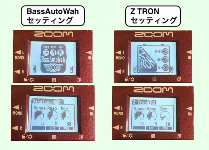 ワウのモデルがたくさんあるので、その中から「BassAutoWah」「ZTRON」「A-filter」の音を聴いてみましょう♪