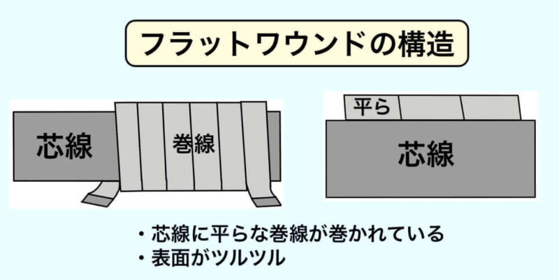 ハーフワウンドを知るためには、ラウンドワウンドとフラットワウンドとの違いも知る必要がありあます。