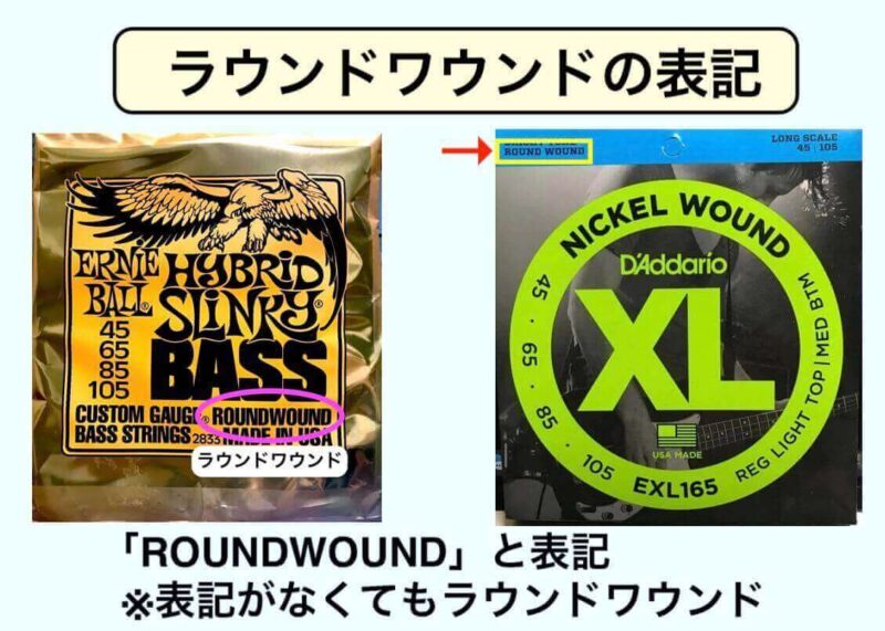 「ラウンドワウンド」の表記がなくてもラウンド弦だよ。