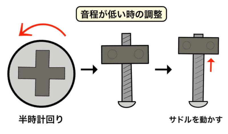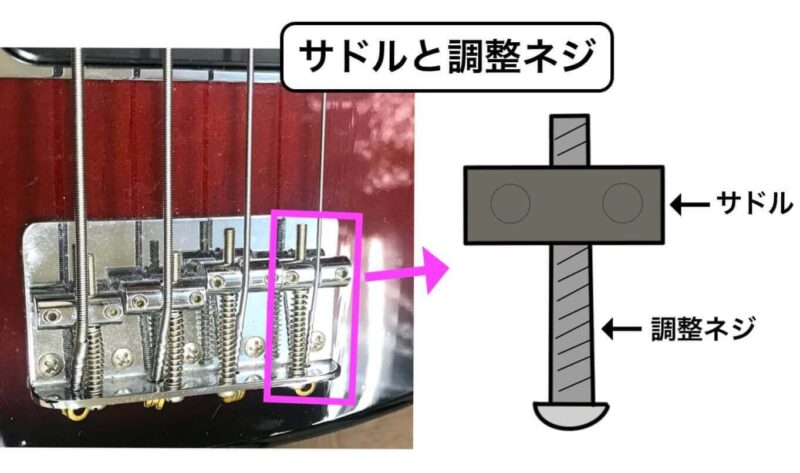 まずベースのブリッジの「調整ネジ」と「サドル」の役割を知っておきましょう〜