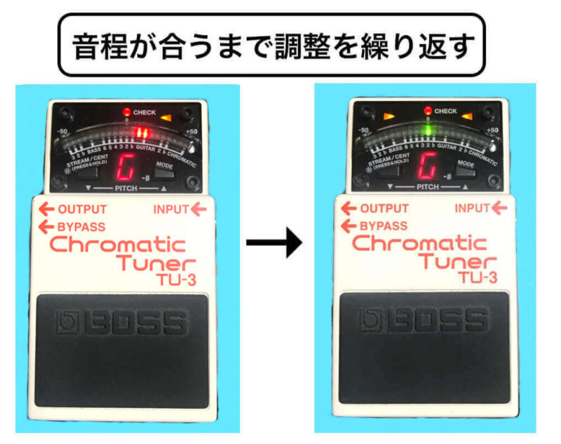さらに半音下げチューニングやドロップDチューニングをしたあともオクターブ調整が必要になります。