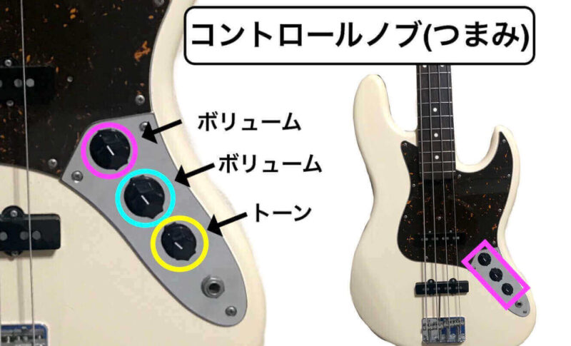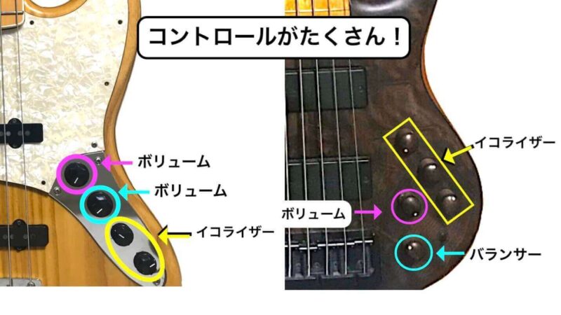 つまみは「ボリューム/ トーン/ イコライザー/ バランサー」のどれかですね〜