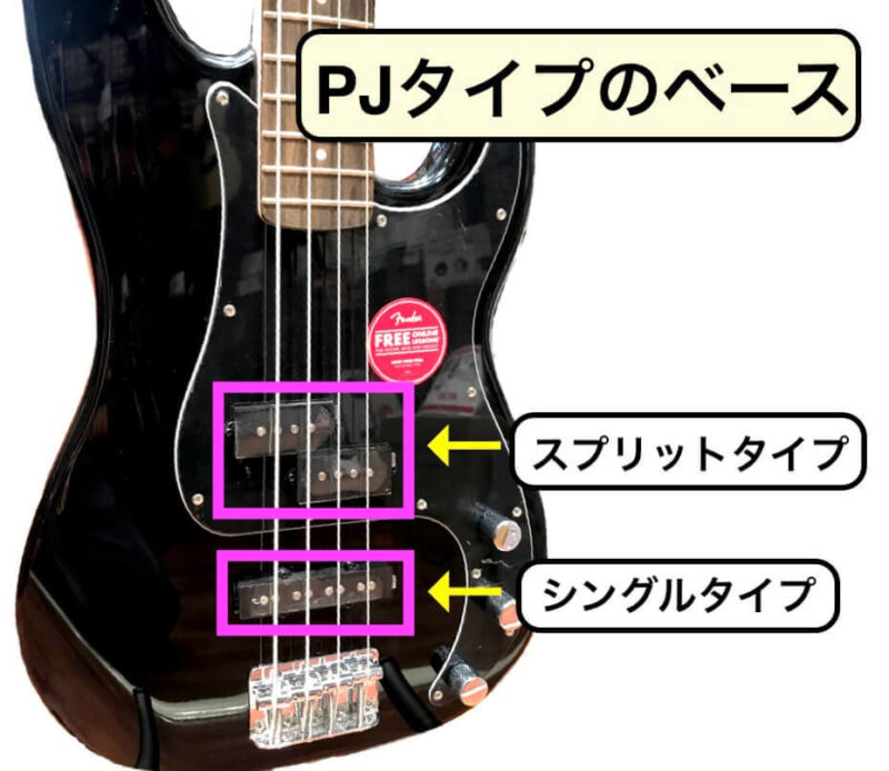 シングルコイルスプリットコイルを合わせたタイプのベースもあるよ!