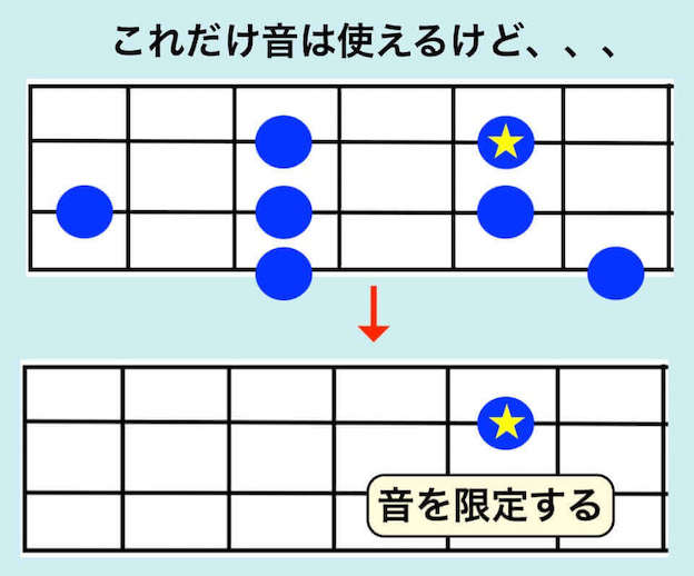 冒頭に行った「テキトーに弾く」とはこういうことだと思います。