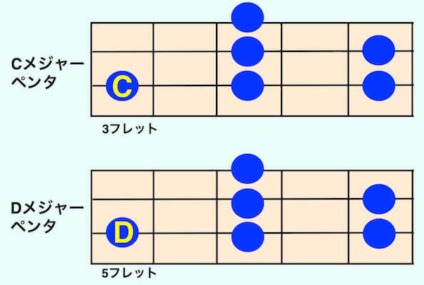 CメジャーペンタからDメジャーペンタに移動したいときは、スタート(ルート)を”D”に変えて、形を変えずにそのまま弾けばDメジャーペンタの完成です!