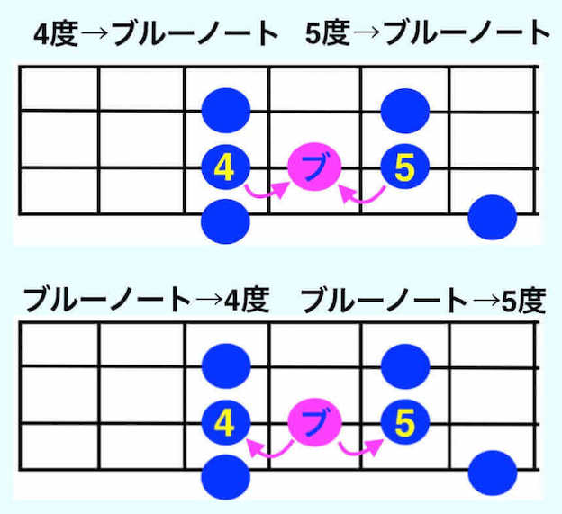 ブルーノート単体で使うというより、ブルーノートから半音上や下に動かしてフレーズを作ることが多いかな。