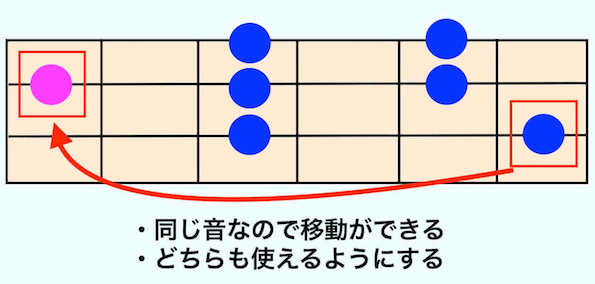 マイナーペンタはフレージングによってポジションを使い分けるので、2通りのポジションを覚えましょう♪