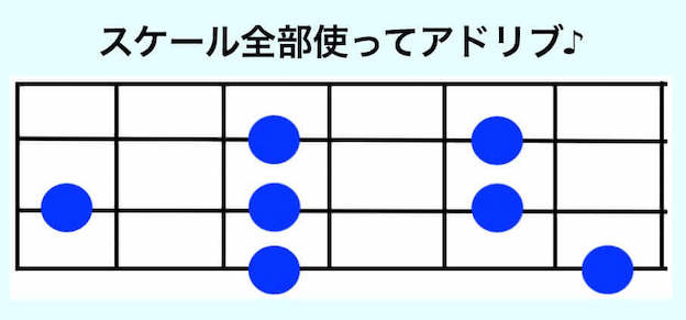 ジャズなど複雑なコードが使われる曲はスケールも複雑になりますが、今回は一番シンプルなスケールを使ってアドリブ練習をしていきます。