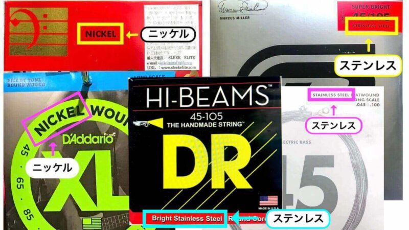 ベース弦は主に「ニッケル」と「ステンレス」という2つの素材があります。
