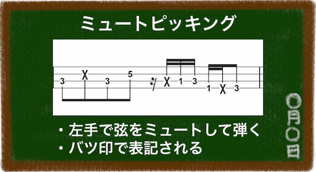 | ゴーストノート | ![]() | 弦をミュートして弾く 空ピック |