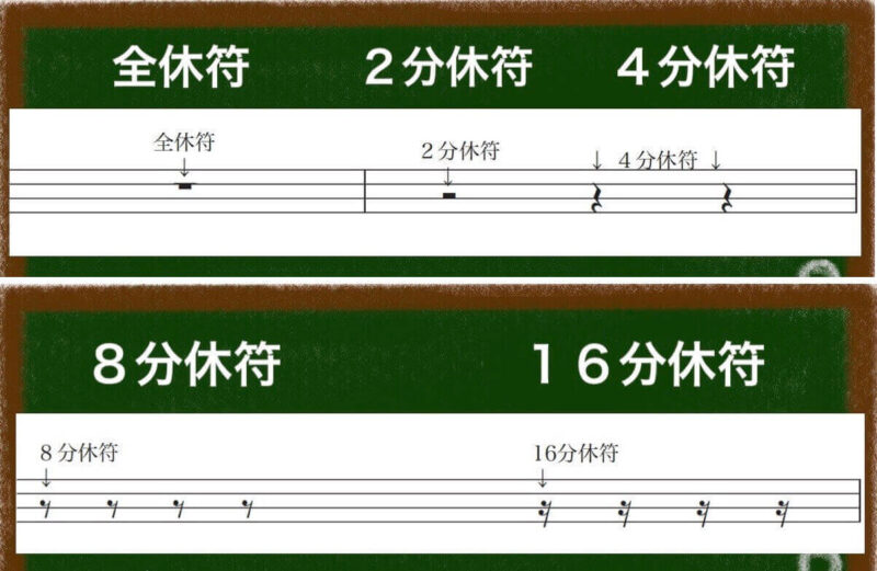 休符は楽譜と同じように表記するよ!