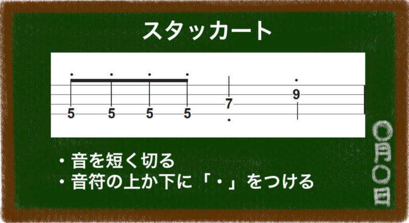スタッカートのタブ譜記号