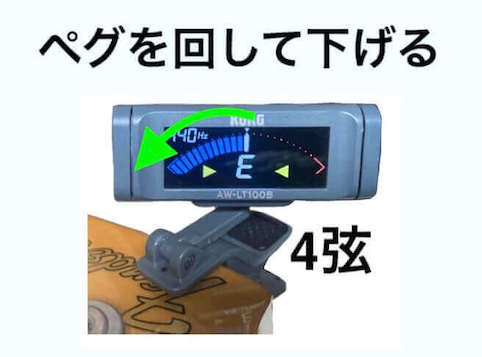 次に4弦だけ”D”の音にチューニングを下げます。