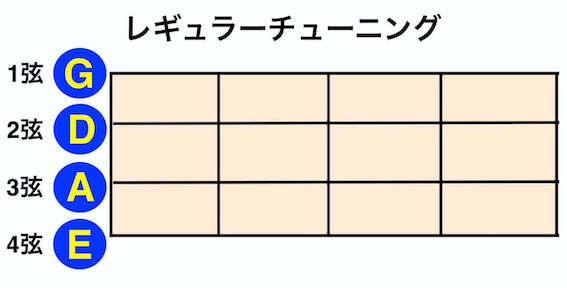・標準(レギュラー)チューニング:E–A–D–G