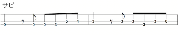 4弦ゼロフレットを使う部分をタブ譜で見てみましょう♪