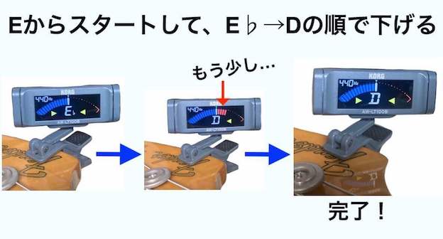 チューナーを使ってドロップDにします。