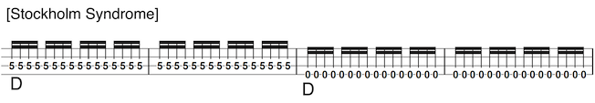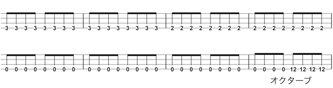 ・オクターブ違いのDを2小節ずつ繰り返す